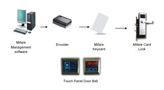 A intelligent door lock system are designed to assure short, economic and efficient servicing without compromising its required build- reliability for security and the software provides easy to use interface and it is customizable to suit your hotel management without the need to change hardware. It is a Hertzian waves (HW) technology lock for card detection which to minimize power wastage thereby sustaining stability in card detection and lengthening of battery life.